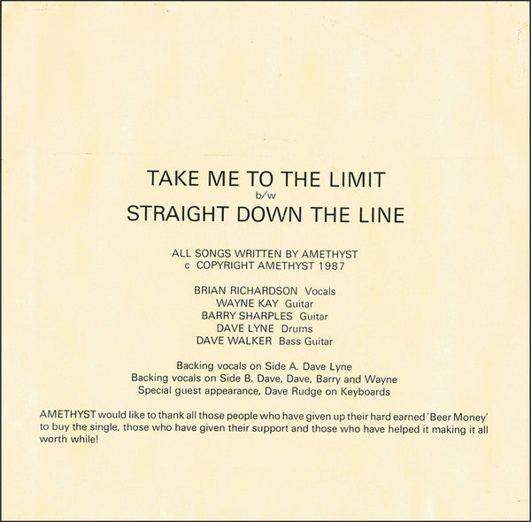 Amethyst (13) : Take Me To The Limit (7", Single)