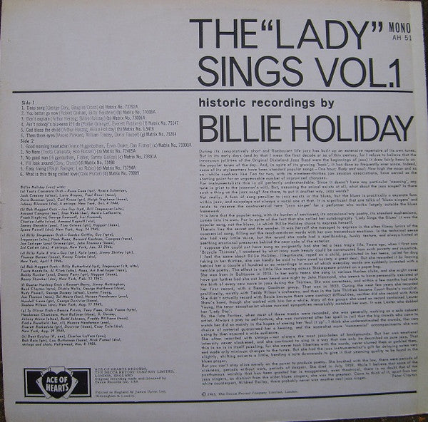 Billie Holiday : The Lady Sings - Vol. 1 (LP, Comp, Mono)